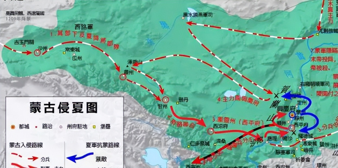 ▲蒙古帝国灭亡西夏