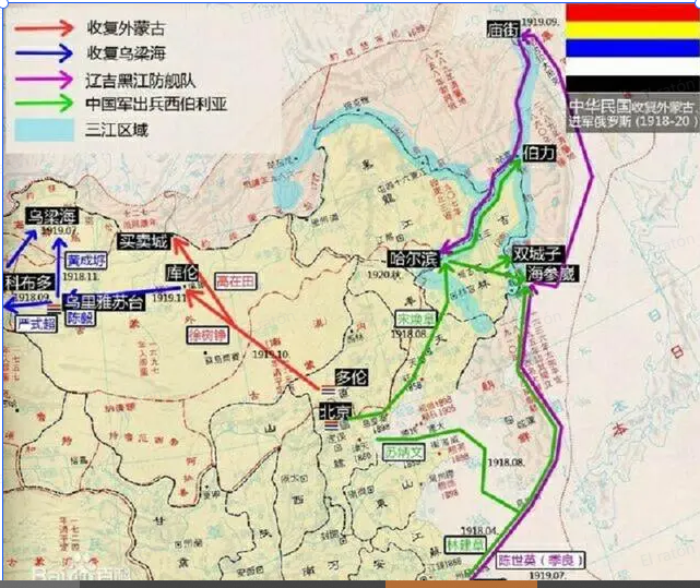 1918年8月,北洋军阀政府派军北上,击溃俄军,收复了唐努乌梁海。