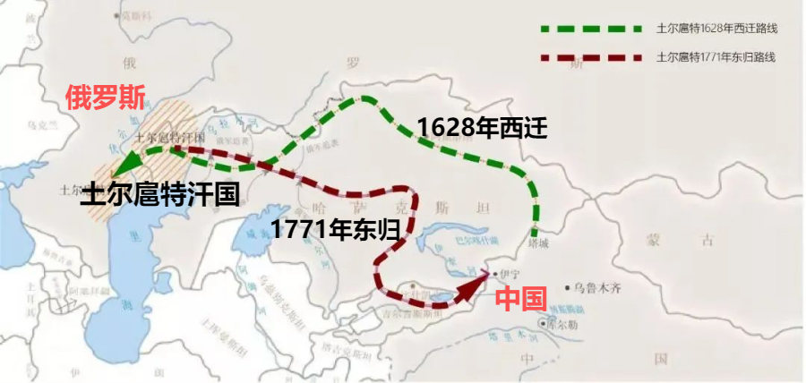 此时的土尔扈特部对外需要抵御俄罗斯的入侵,对内则要防止准噶尔部的吞并,狭小的牧场已经难以养活整个部族,寻找新的栖息地已经成了不得不做的选择。