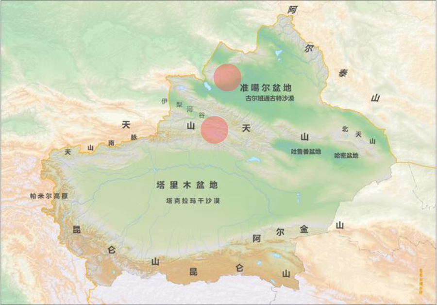▲17世纪后期东亚和中亚形势图(红圈为土尔扈特部)
