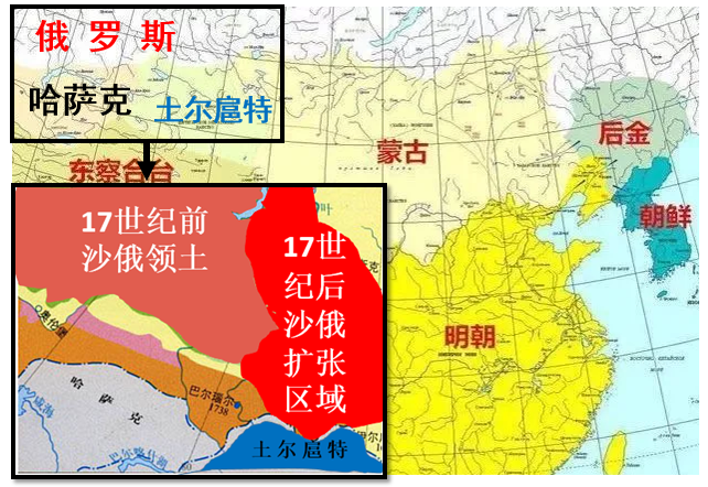 ▲17世纪初,俄罗斯扩张至土尔扈特部的领地