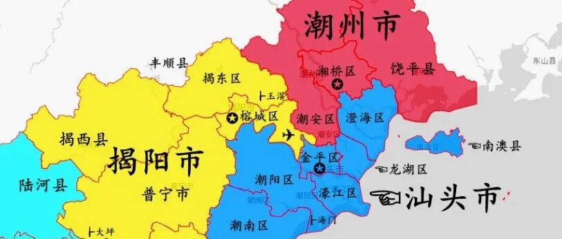 为调整潮汕开放格局,潮汕地区在1991年被一分为三,即地级汕头市、潮州市和揭阳市,潮汕行政上“三足鼎立”的局面形成。