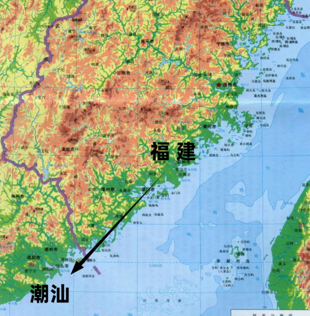 ▲潮汕与闽南沟通顺畅,与广东各地则被山脉相隔