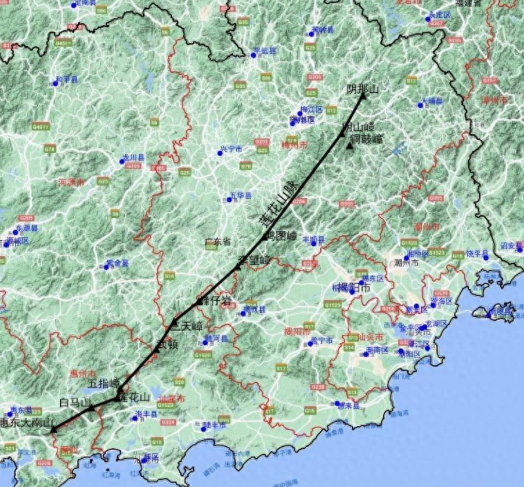 ▲莲华山脉的存在,使得潮汕地区和福建的联系更加紧密