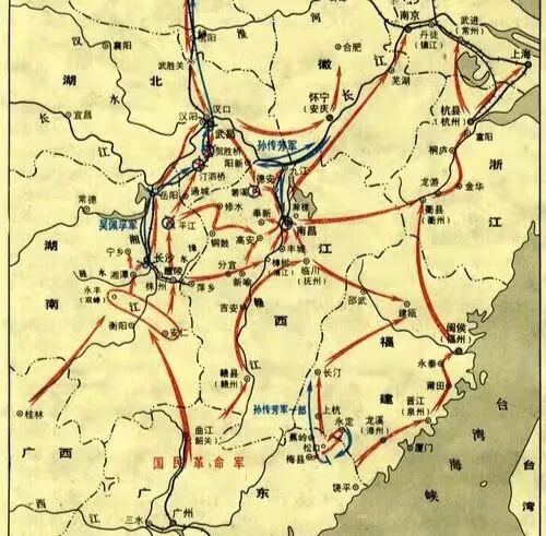 1926年,在国共合作的背景下,国民革命军发起北伐战争。北伐军势如破竹,接连击溃吴佩孚、孙传芳并重创张作霖。北伐军统帅蒋介石趁势在南京建立国民政府。
