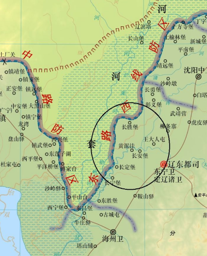▲明朝与蒙古在辽东对峙形势 辽河成为辽阳抵挡蒙古的天然屏障