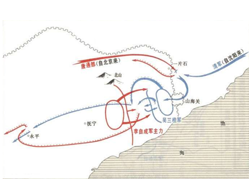此时,中原的李自成等农民军势如破竹,于1644年攻陷北京,明朝灭亡。清朝趁此时机挥师入关击败李自成,顺利进驻北京,这成为了清朝发展的转折点,也成为了辽东和沈阳地位的转折点。