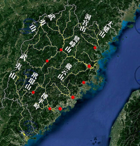 ▲福建主要山脉。山地遍布丝毫不利于作物耕种,平原只占到总面积的一成