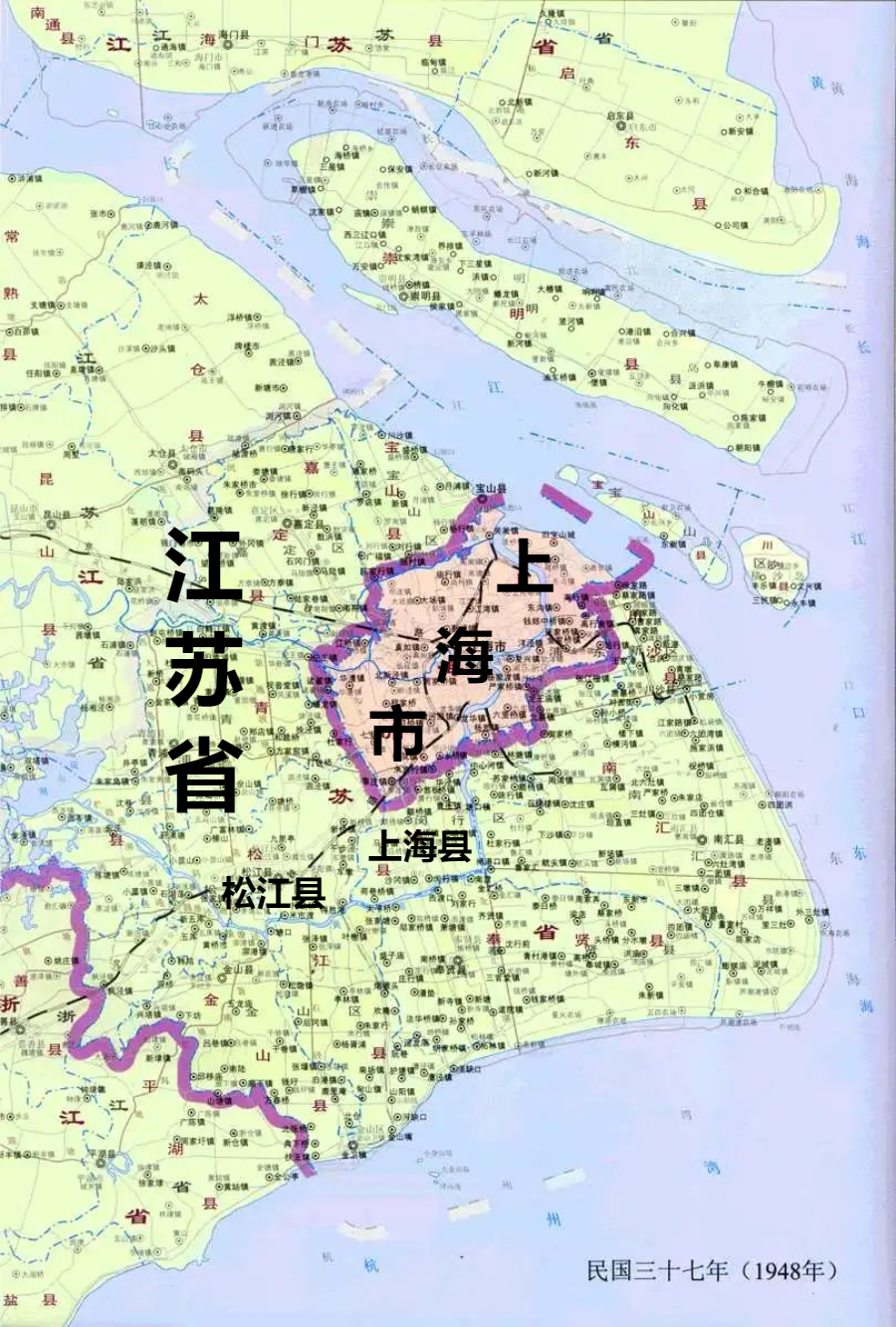 但直到20世纪50年代,上海市的面积也只636平方公里,仅为现在上海市的10%左右。