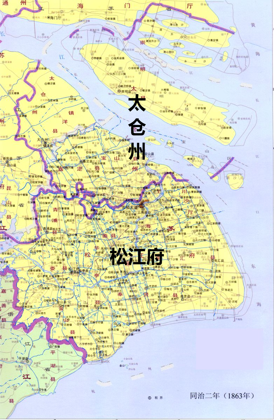 原本明清时的松江府加太仓州各县被划入一个新的区划:沪海道。辖区已几乎与今日上海市的相当(除太仓县和长江北岸)。