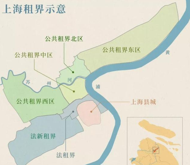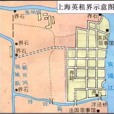 1848年,法美两国也模仿英国在上海划分租界。租界全部位于上海县城以外,列强可以任意规划建设。