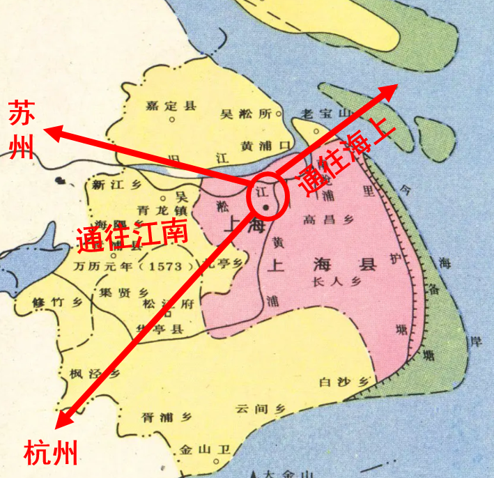 之所以选择上海县,在于其正好位于吴淞江和黄浦江的交界点,是河海联运的天然良港。