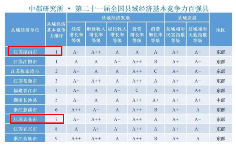 ▲昆山、太仓上榜2021年全国百强县前十