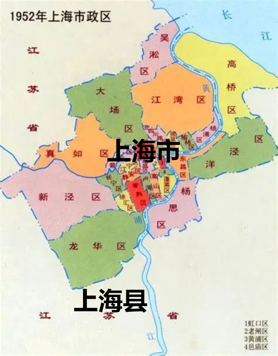 更有意思的是,赋予了“上海”这个名字的“上海县”,在1958年之前仍然隶属于江苏省,“上海县”与“上海市”互不统属,分属于不同的省(市)管辖。