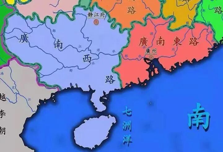 宋朝行政区划延续唐制,岭南西道和岭南东道分别称为广南西路和广南东路,是为广西和广东的前身,海南开始三百年隶属广西的历史。
