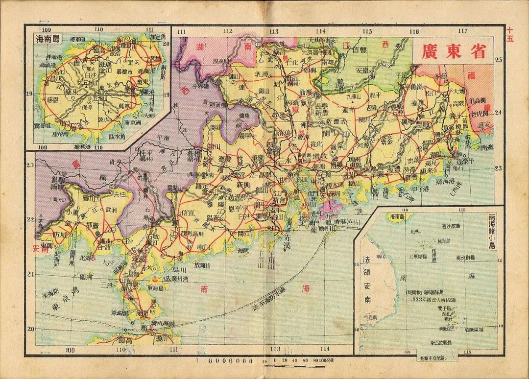 ▲1936年广东省地图,海南岛在左上角框中