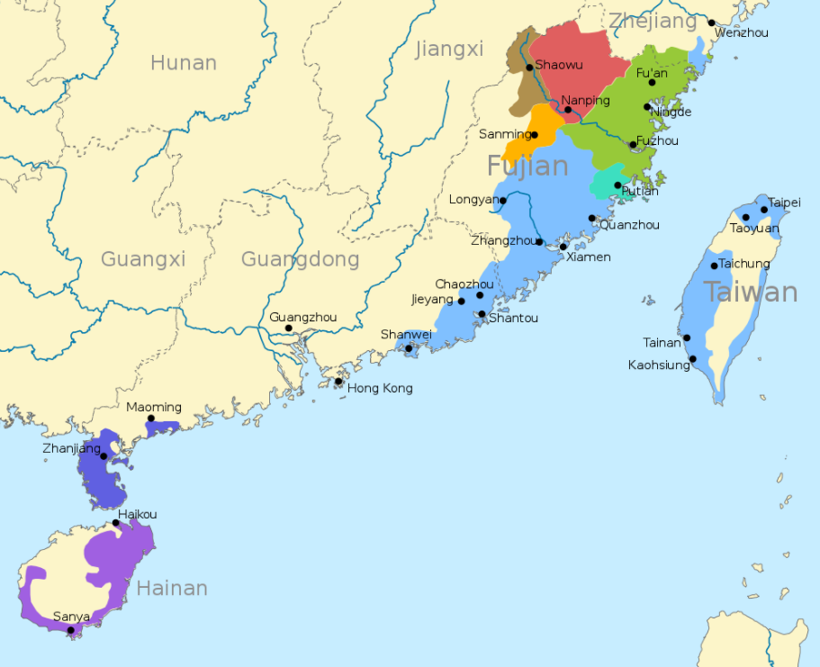 ▲闽语系的分布范围