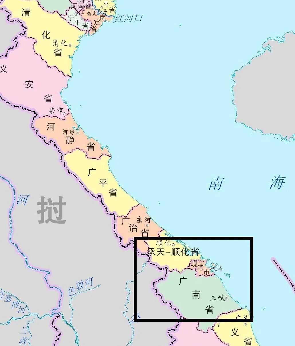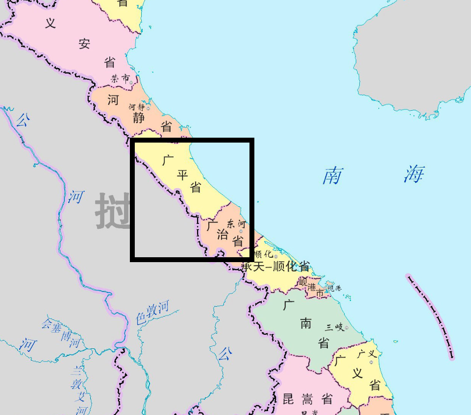 ▲一说越裳古国在今越南广平省和广治省(黑框)