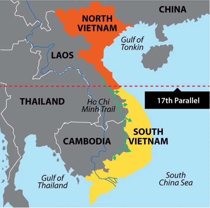 1954年,胡志明领导下的越南民主共和国(北越)在奠边府战役中给予法国殖民者沉重打击。法国随后撤出越南,美国填补法国留下的权力真空,越南国改总统制,成立“越南共和国”(南越)。