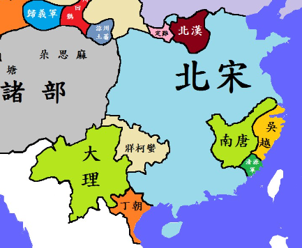 与此同时,宋朝在971年消灭南汉,统一中原之势逐渐形成。