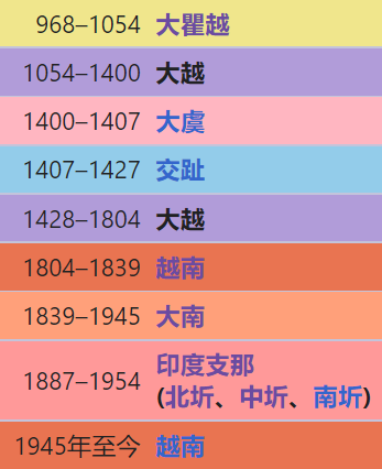 越南10世纪从中国独立后,越南封建王朝自称“大越”,中国封建王朝则称其为“安南”。