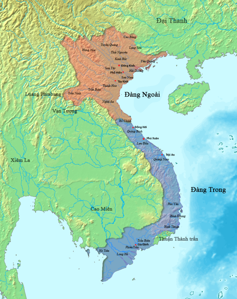 ▲阮福映统一郑(橙)阮(蓝)两家的地盘,建立阮朝