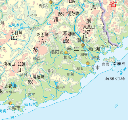 ▲莲花山脉把潮汕地区和广东其他地区隔开