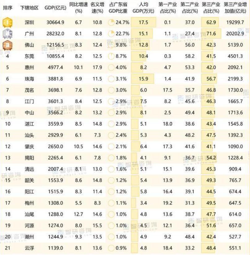 ▲2021年,三市GDP均排在广东中下游水平,汕头11位,揭阳13位,潮州20位