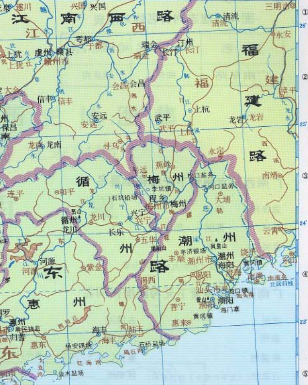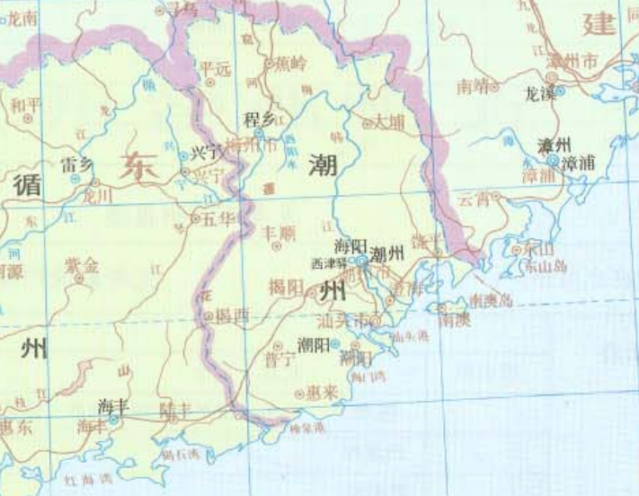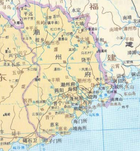▲宋代潮州。梅州在1073年降为程乡县,隶潮州