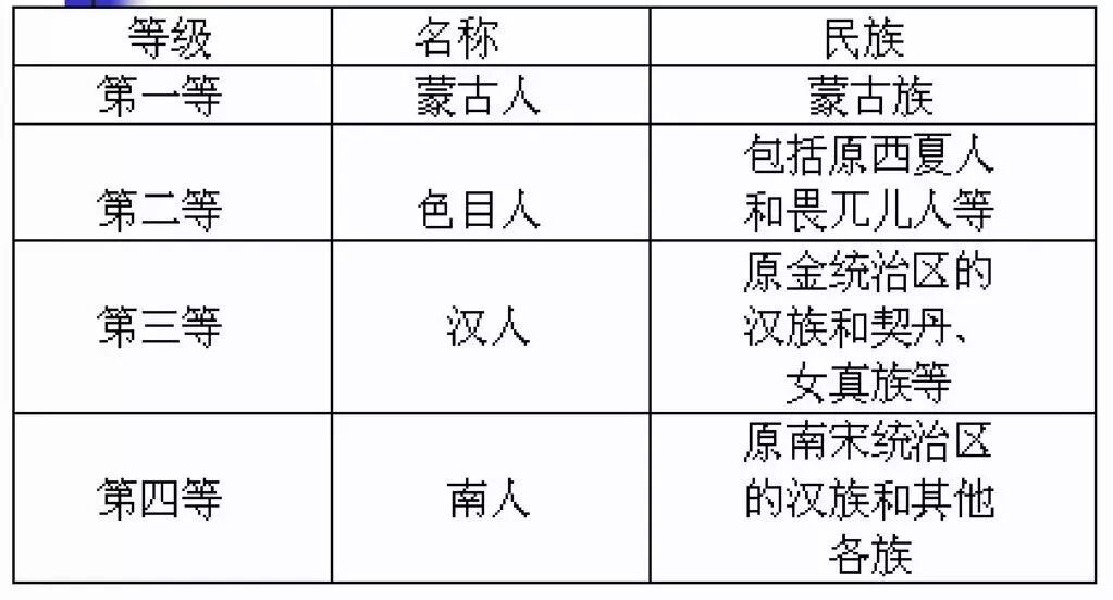 元朝的统治者们在进入中原之后,把汉人当作草原上的牛羊,将其分为四等,也就是四等人制度。