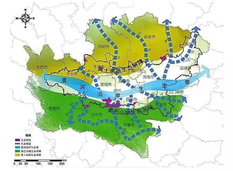 ▲图:关中平原城市群生态安全格局示意图