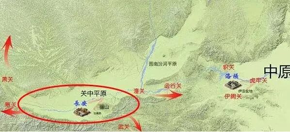 真正“关中平原”的由来始于战国时期,因西有散关,东有函谷关,南有武关,北有萧关,故取意四关之中而得此地名。