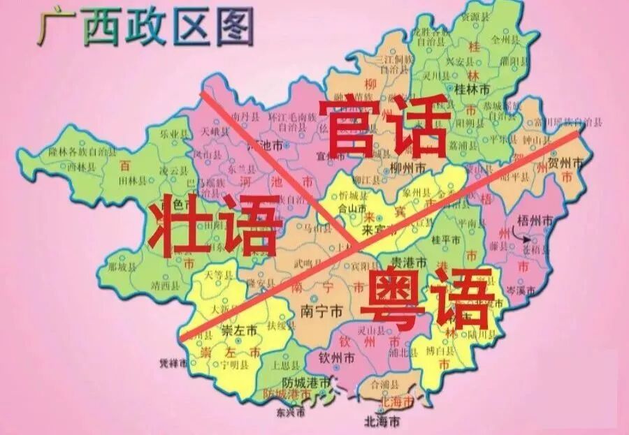 ▲广西三大方言大体分布图