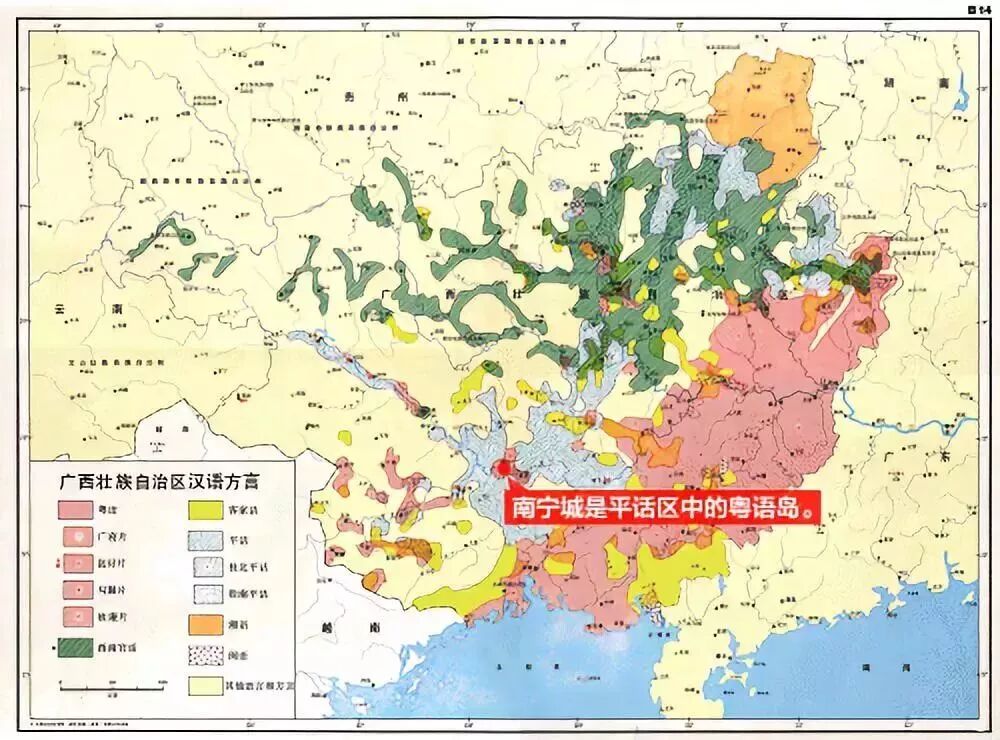 现在的南宁形成了壮话包围平话,平话又包围着粤语的“岛中之岛”型的方言岛。