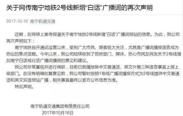 近年来,市民保育白话的呼声越来越高,但近期被赋予众望的“南宁地铁粤语报站”最终搁浅。