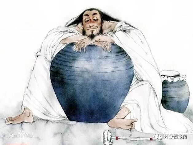 ▲趴在酒坛子上的刘伶
