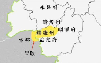 果敢位于今天的滇缅交界地区,云南和缅北地区由于远离封建王朝的核心区,所以从两汉到隋朝各个王朝仅仅是在滇地设置了行政中心,中心外的大片地区大都是靠当地土酋实行羁縻统治。既以土官治土民,中央政府维持名义上的统治。