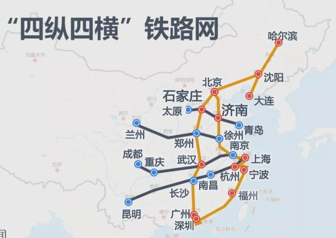 2004年1月1日,国务院通过了《中长期铁路网规划》。规划到2020年,全国铁路里程将达到10万公里,将建成“四纵四横”客运专线,这便是今天高铁主干网络。