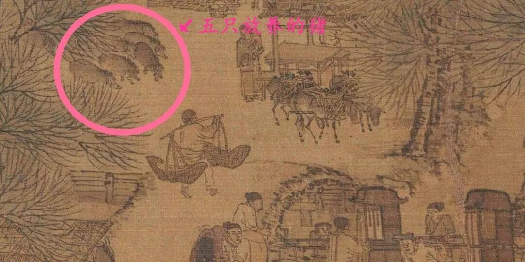 宋朝,中国古代经济达到一个巅峰,养猪业也成为支撑这个空前繁荣的重要支柱。《东京梦华录》中记载,每天赶猪的都从开封南门进城,每群以万头猪计数。在全面展现宋朝城市景象的《清明上河图》中,也有家猪的形象。