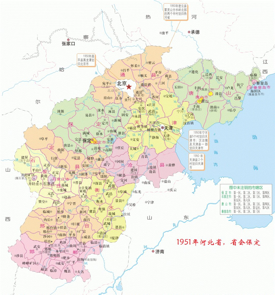 ▲1951年河北省地图,当时的天津市仅有今日的市中心区域及沿海塘大区