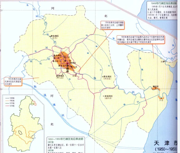 在那时,天津甚至不完全算一个沿海城市,到20世纪70年代前逐步合并了河北省的许多地方后,天津才形成了今日的版图。