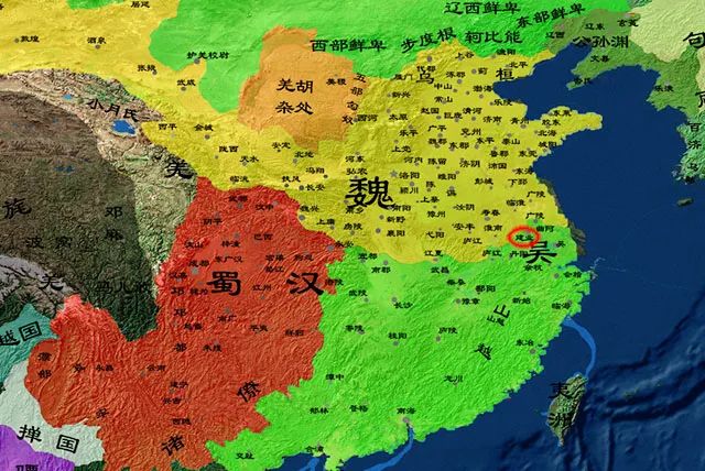 到公元220年之前,刘备、曹操和孙权成为了实力最强的三个军阀。其中,曹操占据中原,刘备占据川蜀,孙权占据江南。