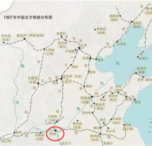 ▲郑州(当时叫郑县)成为京汉、汴洛铁路交汇点