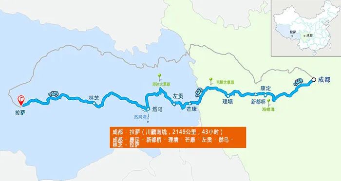 G318国道正是沿着当年解放军由川入藏的道路修建而成,从四川成都出发,经雅安、康定、昌都直抵拉萨。这条线路如今已是自驾游的热门线路,一首《康定情歌》更让小城康定闻名全国,使旅游业逐渐成为当地的支柱产业之一。