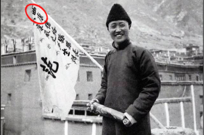 ▲这位似乎是西康省德格县的县长,旗帜上撰有汉文和藏文