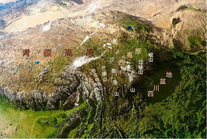 这里是四川平原与横断山脉及青藏高原的分界线,地势陡然上升两、三千米。