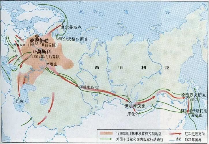 1917年,俄国爆发十月革命,革命浪潮席卷俄国全境。为阻止苏维埃获得政权,美日英等国组成干涉军,入侵俄国。