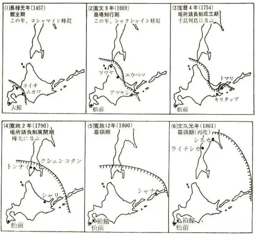 1669年,北海道的阿伊努人掀起反日斗争,装备火绳枪的松前藩武士对阿伊努人实行了碾压式打击,日本随后向北海道内陆及北部地带扩张。
