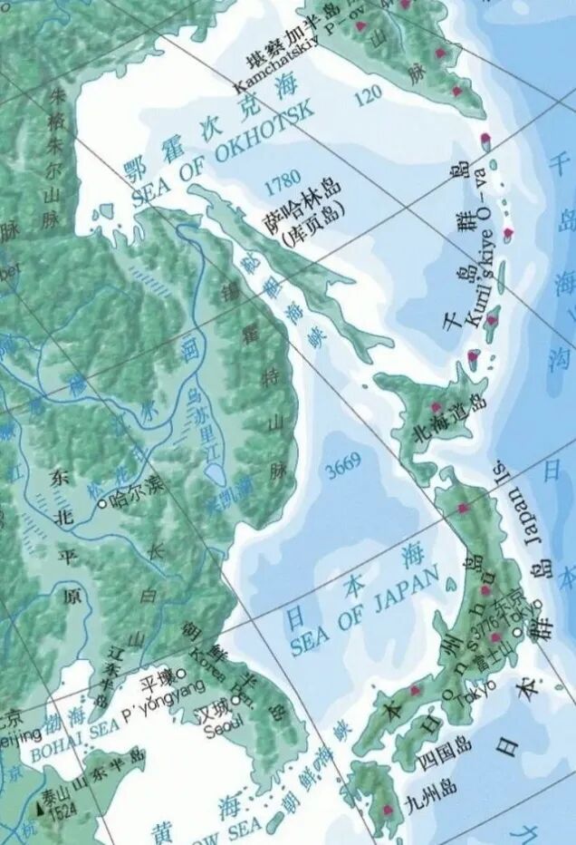 库页岛和日本列岛构成东亚大陆外侧的连串岛链,是日本无法忽视的地缘踏板。