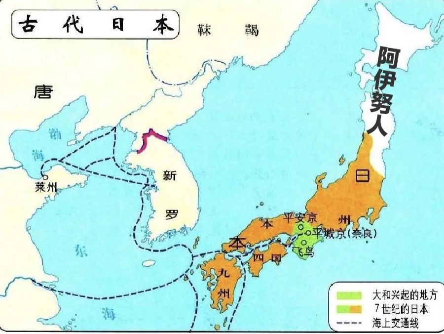 唐王朝称霸东亚的同时,邻近的日本通过7世纪的大化改新,模仿唐朝制度建立了封建制的大和国家。